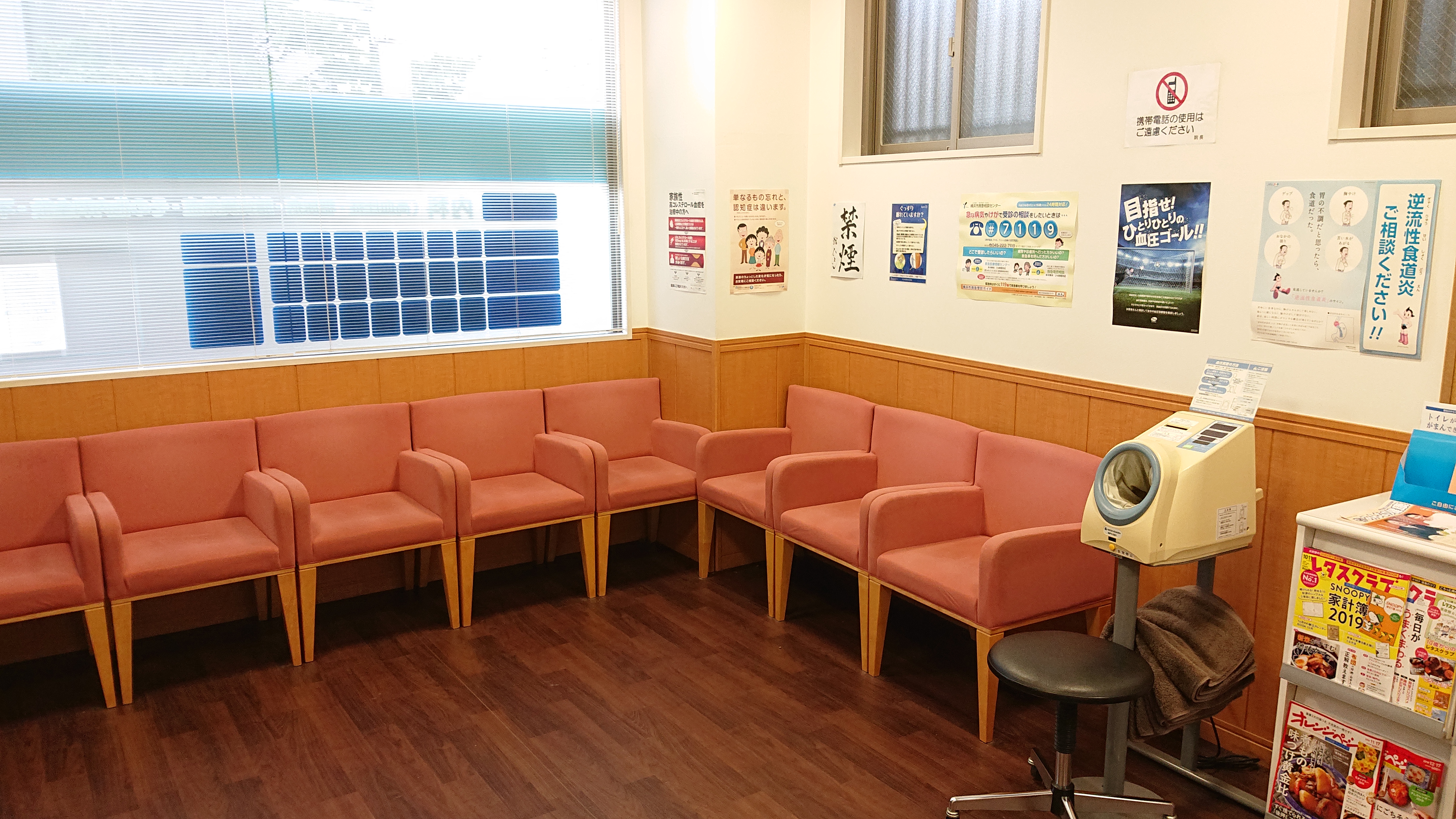 他の患者さんのご迷惑となりますので、携帯電話はマナーモードにし、通話や雑誌の写真撮影はご遠慮ください。 -