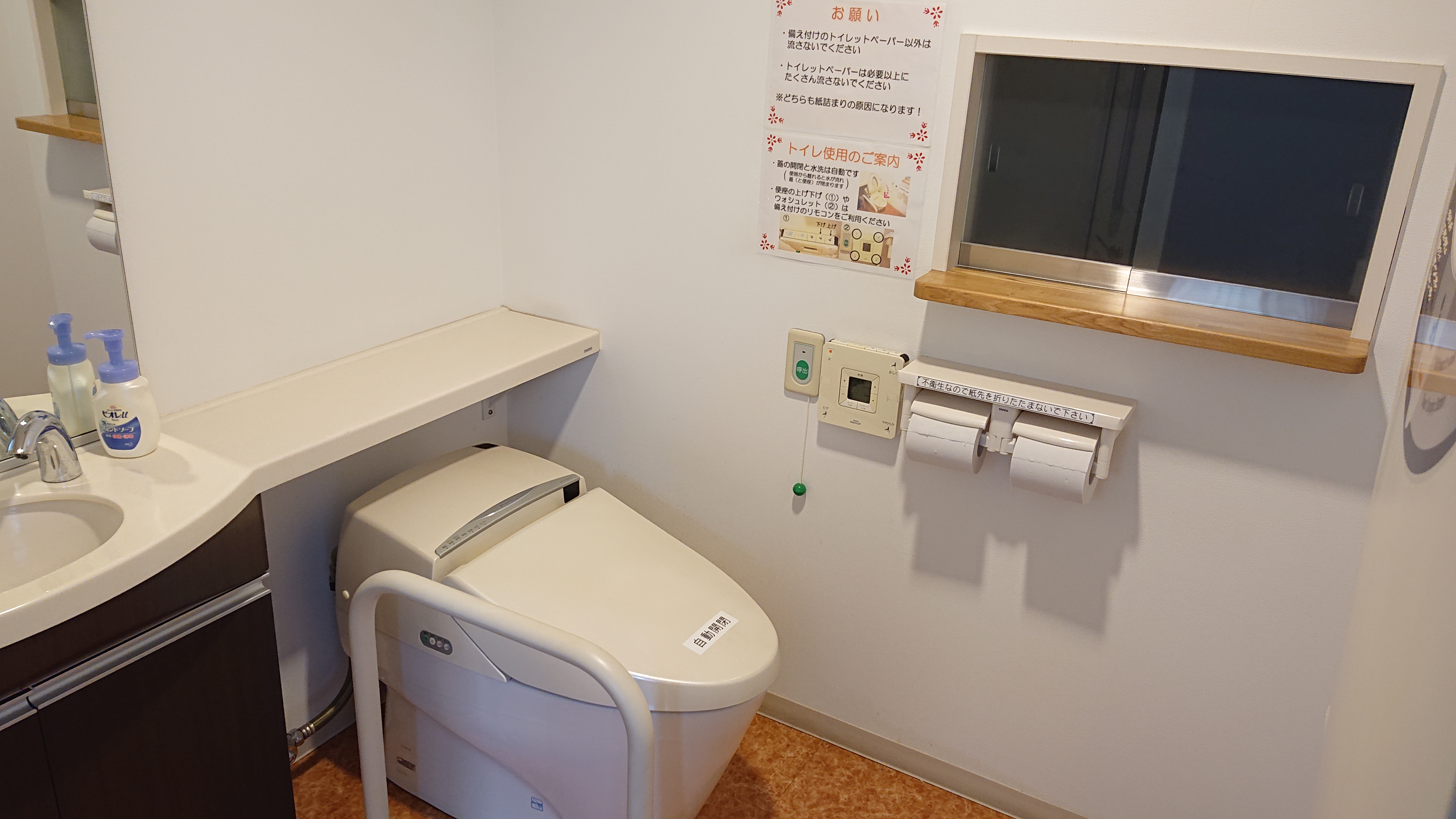 便座の上下、ウォシュレットの操作は、備え付けのリモコンをご利用ください。 -
